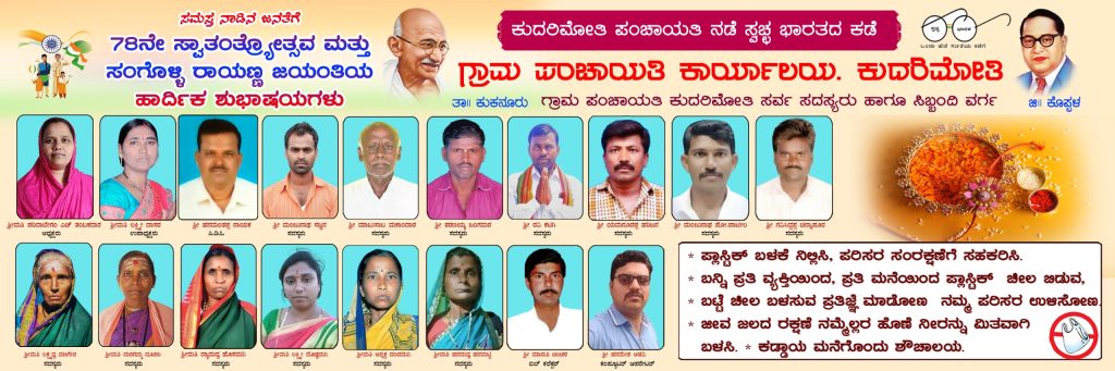 ಶುಭ ಕೋರುವವರು : ಅಧ್ಯಕ್ಷರು,ಉಪಾಧ್ಯಕ್ಷರು,ಪಿಡಿಓ ಹಾಗೂ ಸರ್ವಸದಸ್ಯರು ಹಾಗೂ ಸಿಬ್ಬಂದಿ ವರ್ಗ, ಗ್ರಾಮ ಪಂಚಾಯತಿ ಕಾರ್ಯಾಲಯ ಕುದರಿಮೇತಿ.