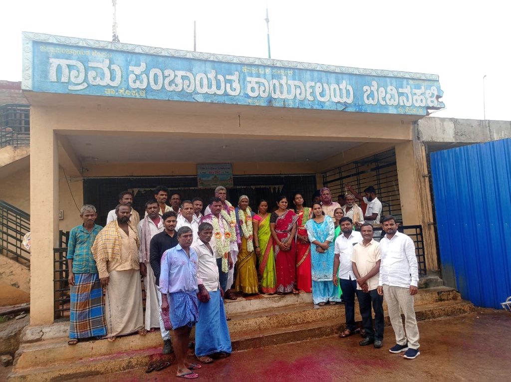ಬೇವಿನಹಳ್ಳಿ ಗ್ರಾಮ ಪಂಚಾಯತಿ ನೂತನ ಆಯ್ಕೆಯಾದ ಅಧ್ಯಕ್ಷ, ಉಪಾಧ್ಯಕ್ಷರಿಗೆ ಗಣ್ಯರು.